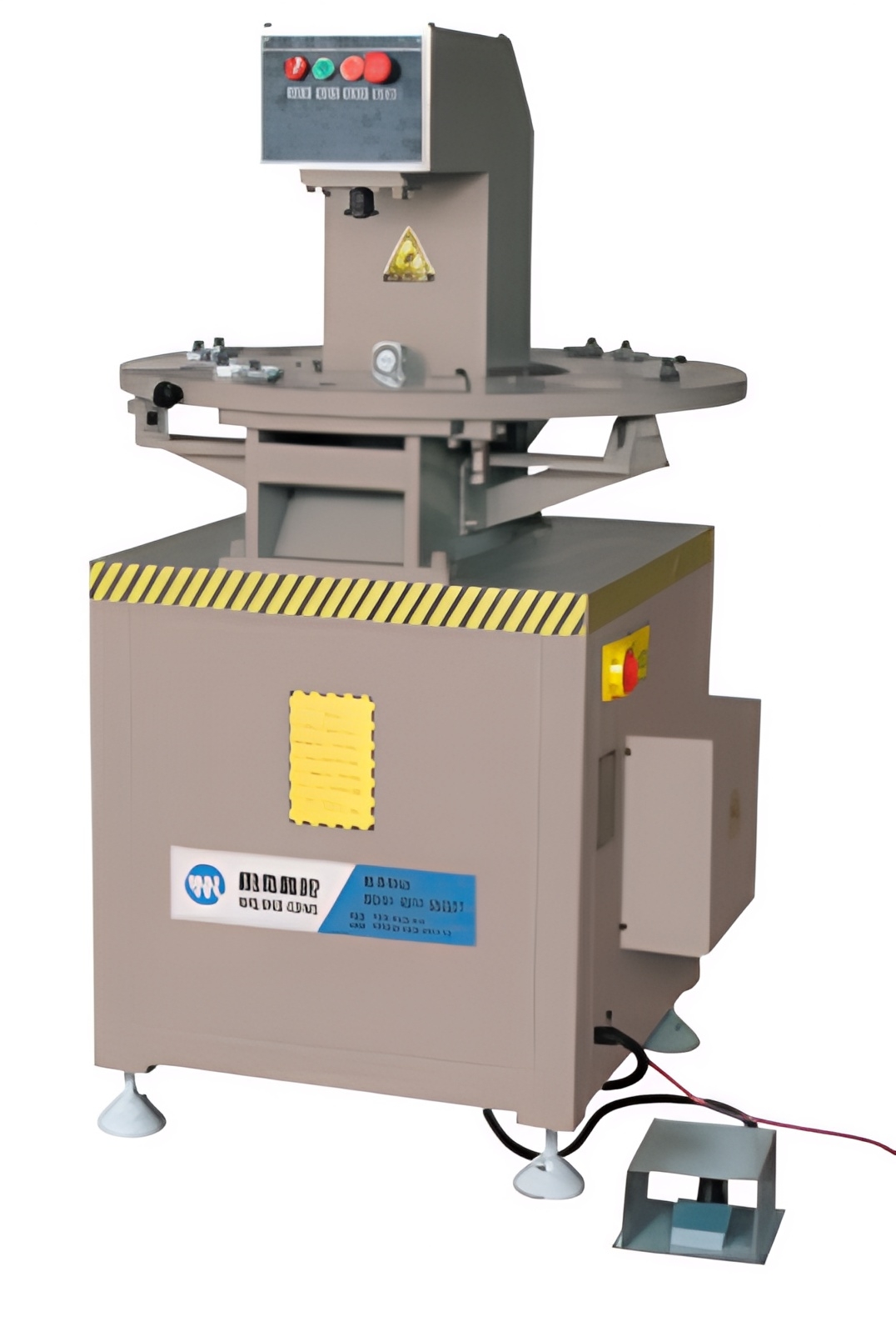 Компактная напольная конструкция, рабочий стол круглой формы и промышленное исполнение делают оборудование практичным решением для участков прессовой обработки алюминиевых профилей.